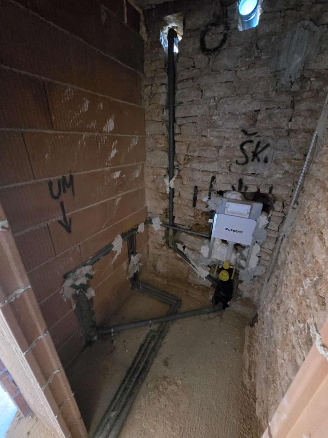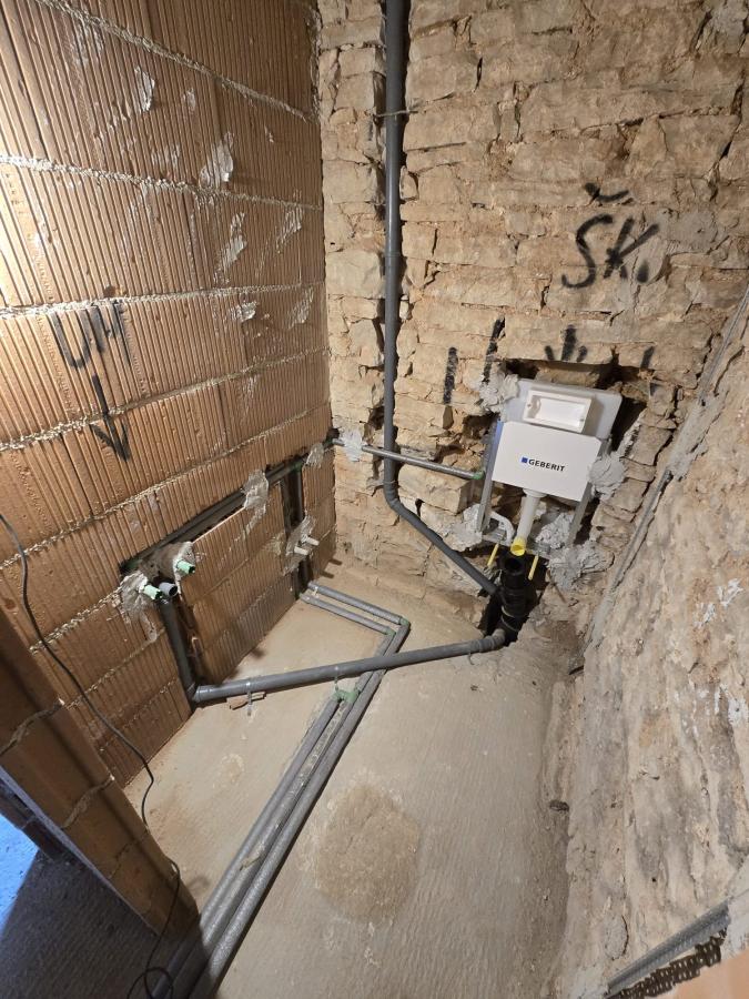 Prva faza instalacija gotova, od kotlovnice smo vukli toplu hladnu i cirkulaciju do kuhinje, kupatila i wc-a. Odradili komplet instalacije, ugrađeni su vodokotlici i konzola za bide.