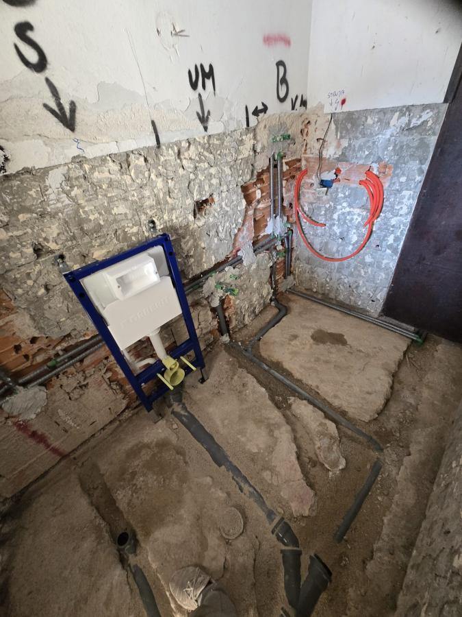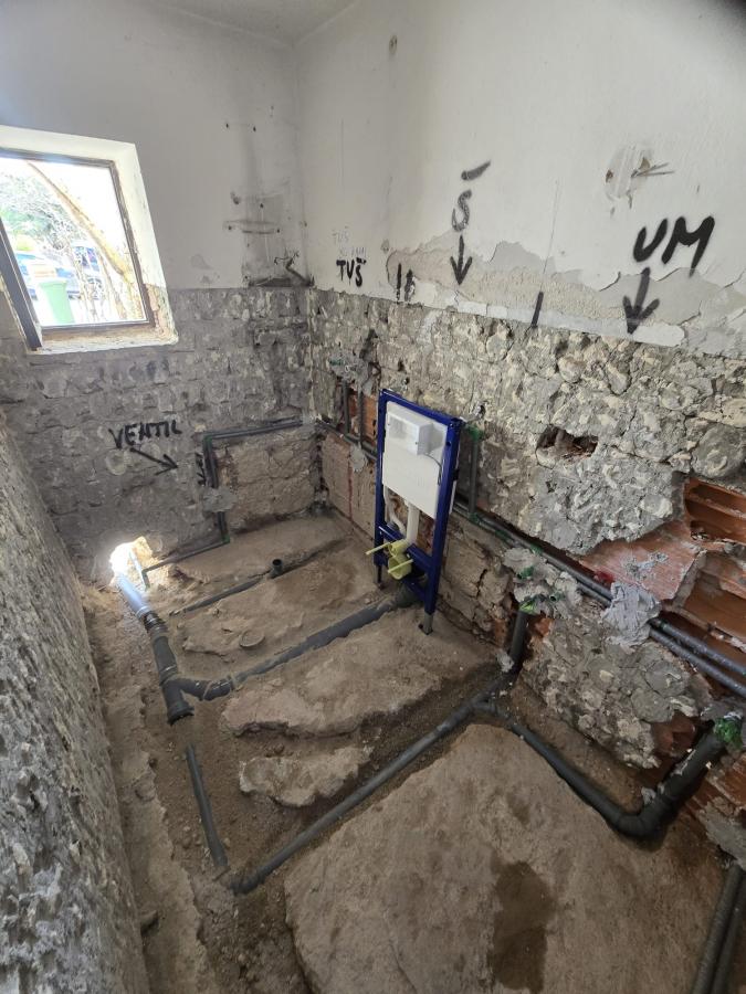 kupatilo prva faza instalacija u staroj kamenoj kući. Ugradnja dovoda i odvoda i geberit vofokotlića.