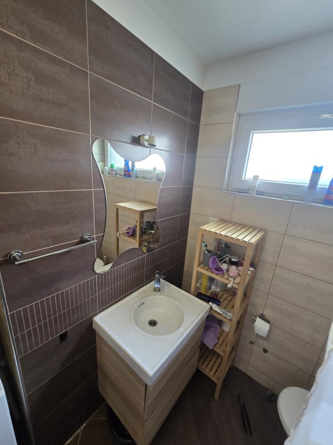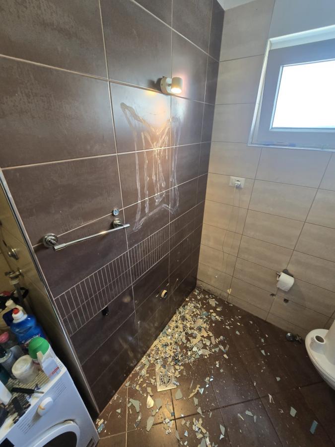 Zamjena umivaonika i ogledala. Ogledalo je zaljepljeno za zid. To je suludo jer se prilikom mijenjanja mora oprezno razbiti i skidati dio po dio kao što se vidi u priloženom.